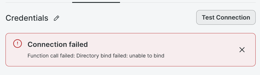 Function call failed: Directory bind failed: unable to bind.