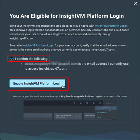 8. Confirm and click on “Enable InsightVM Platform Login”.