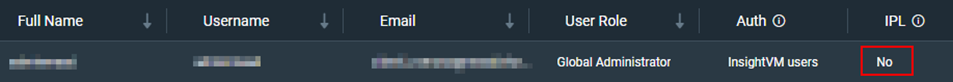 9. The user used will now appear to have InsightVM Platform Login (IPL) = Yes