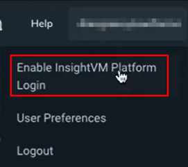 7. Click on your username in the top right corner, and you will see “Enable InsightVM Platform Login”.