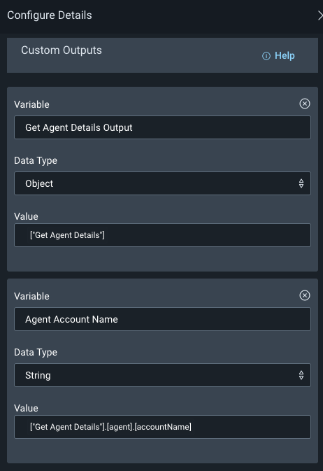 {{[“String To Object”].[output].[agent].[accountName]}}