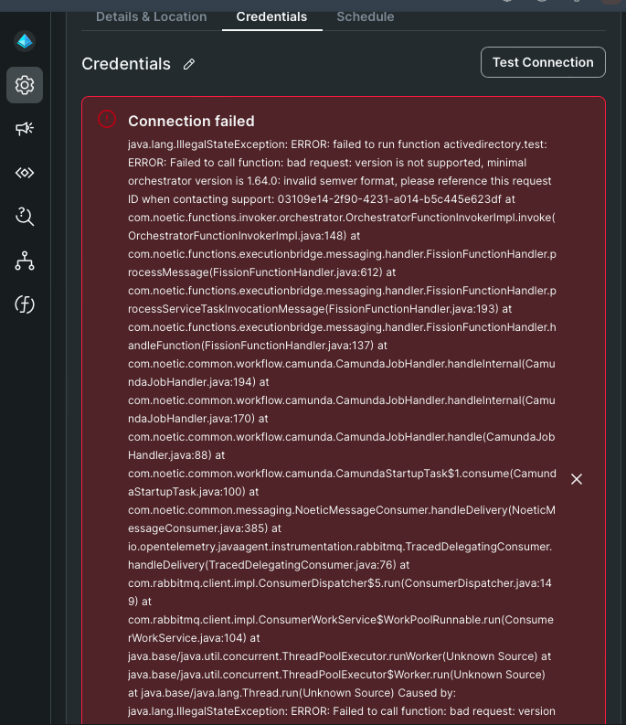 Hi all, I am fresh at here and still in exploring stage. I am tried to set up a orchestrator to connect my on-primes Active directory server in Insight Connect. That is succeed to connect with my Active Directory.However, back to the surface command try to use connector connect the Active Directory server still encounter error.