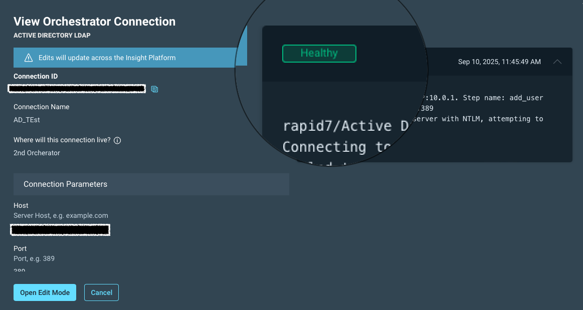 Insight Connect ( Automation)→ Setting →Plugin & Tools → Connection → Add connection→ Select Plugin : Active Directory LDAP → Run On : Orchestrator → Succeed